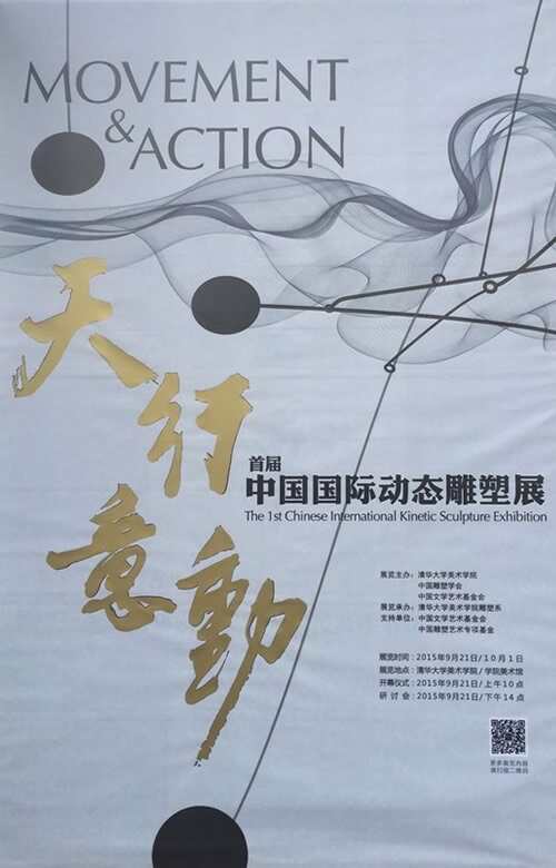 2015年9月21日上午10时,由清华大学美术学院、中国雕塑学会、中国文学艺术基金会共同主办的“天行意动•首届中国国际动态雕塑展”在清华大学美术学院美术馆隆重开幕。本次展览是国内首次科技与雕塑融合的专题展览,力图通过实物作品、视频、文献、研讨会等形式展示动态雕塑艺术,共展出33件国内外优秀动态雕塑实物作品及近40部精彩的动态雕塑作品视频,引起了嘉宾及观众的极大兴趣。