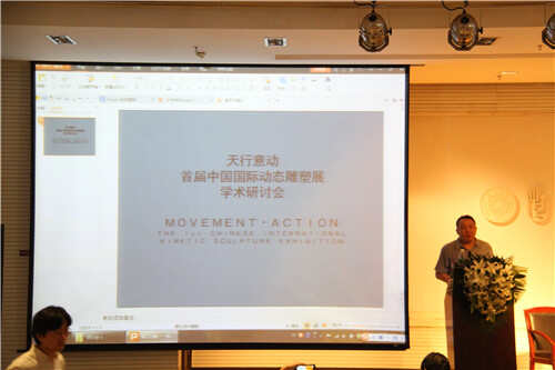 当日下午,在清华美院多功能厅相关领域专家、学者、艺术家共济一堂举办了以“中国动态雕塑的背景、教学与实践”为主题的学术研讨会,其中孙振华博士担任学术主持。研讨会邀请国际动态艺术组织中国区执行总监粟多壮先生、清华大学机械学院赵景山副教授、清华美院信息艺术设计系师丹青老师、清华美院雕塑系陈辉副教授、鲁迅美院雕塑系青年雕塑家汤杰、西南交大艺术学院邓乐教授、上海大学美术学院雕塑系罗小平教授就中国动态雕塑的学科状态、教学情况及创作现状分别做精彩演说,同时有九名专家学者参与评议,场下听众踊跃互动,现场学术气氛热烈。