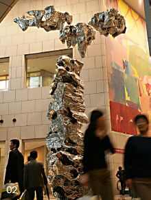 这块石头结构复杂,属于制作上非常耗费人工的那种,在工作室整整制作了一年。东京是个地震频繁发生的地区,对于柱体和悬挂的东西要求很精密。在极为苛刻的条件之下与日方谈判,有一次他们来了八个人,分别代表不同的部门,都是我在那里安装雕塑所要协作的,当我回答了每一个人的问题后,终于达成了一套合理的安装方案,使后来的安装非常顺利。同时收藏在大厦里的还有两个世界著名的画家,一个是英国人,一个是美国人。我为这组作品起的名字是“物的天堂”,因为这里将来是一个集办公、购物、餐饮、玩乐为一体的巨型商业大楼(详见附件:关于“物的天堂”)。在东京装置完毕的时候,我提出把三件作品的标题翻成日语,但当地的日本设计师认为不必,原因是这里没有日本的艺术家!