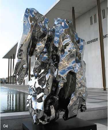 假山石似乎有一种魔力,即使是今天我所制造的不锈钢假山石也依然如此。上海外滩3号沪申画廊艺术总监翁玲女士看中了这件作品,要拿去上海的画廊展出,但作品尺度太大,只好凿墙破窗,最后总算放在了三楼,要知道,这座楼是上海外滩早期的殖民建筑,很有收藏价值,而且单单安装费花掉了几万元人民币,足见画廊老板的魄力。等作品被收藏之后,又同样是凿墙破窗运下来的。