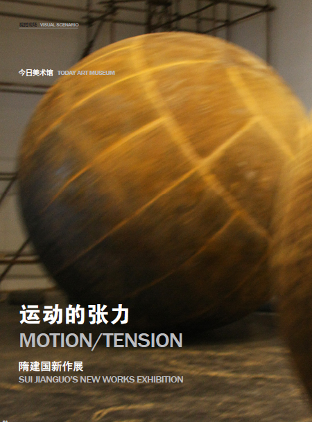 隋建国:这个展览的主展场是今日美术馆二楼的大空间,三十米长、十五米宽,十二米五高。整个展览应该是一件大作品,可以被看成是相互有机联系着的两个部分:一个部分是在周围墙上悬挂在空中的这么一个钢管通道系统,通道里有钢球在滚动和撞击;另外一个部分是地面上的两个大球,也在滚动。地上的这两个个球里面有机械装置,一旦开启,就会不停地转,大概能转七、八个小时。它们在不同的区域里面转悠,各自有一个直径大约六米左右的转动范围。两个球有时候也会互相撞击,有时候可能也会撞到墙根的脚手架上。